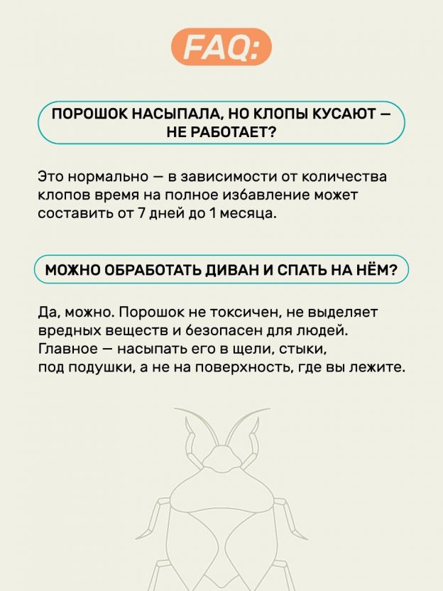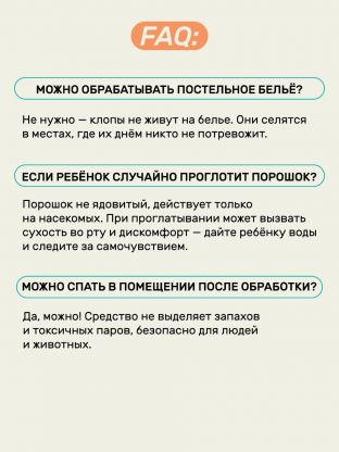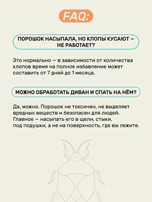 Да, средство эффективно против чешуйниц, мокриц, пауков, клопов и блох. Порошковая форма позволяет обработать любые укромные места и щели.