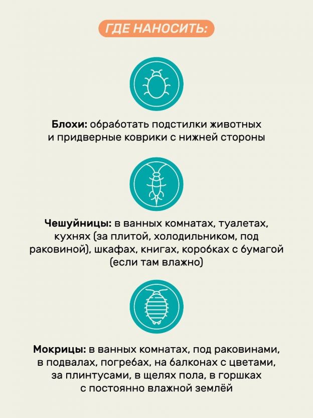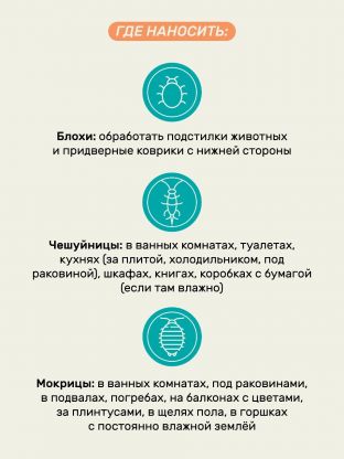 • Эффективен против широкого спектра насекомых — уничтожает клопов, блох, чешуйниц, мокриц и пауков за короткий срок