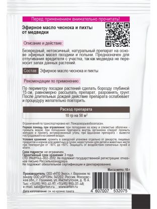 Инсектицид от медведки, 10 г, Эфирное масло чеснока и пихты, Ортон