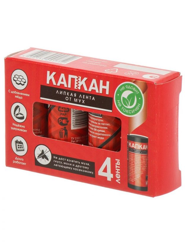 Инсектицид «Капкан» — это липкая лента, предназначенная для уничтожения мух в жилых и производственных помещениях. Она представляет собой длинную бумажную полоску, покрытую специальным клеем, содержащим аттрактант — вещество, привлекающее мух.