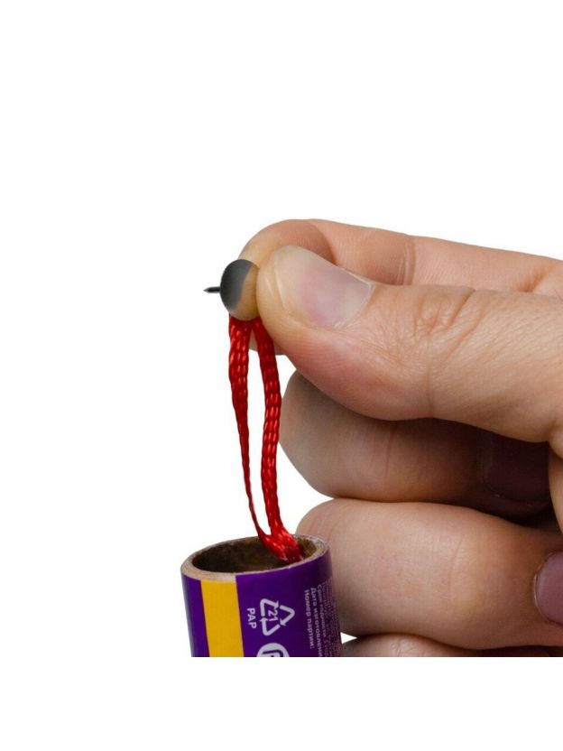 Ловушка для мух представлена в форме картонной гильзы. Внутри свернута в спираль длинная лента со специальным клеящим составом. Пролетающие мимо насекомые задевают ленту и прилипают к ней, не имея ни единого шанса освободиться. Лента абсолютно безопасна для человека и удобна в использовании. В комплекте идет кнопка для удобного крепления.