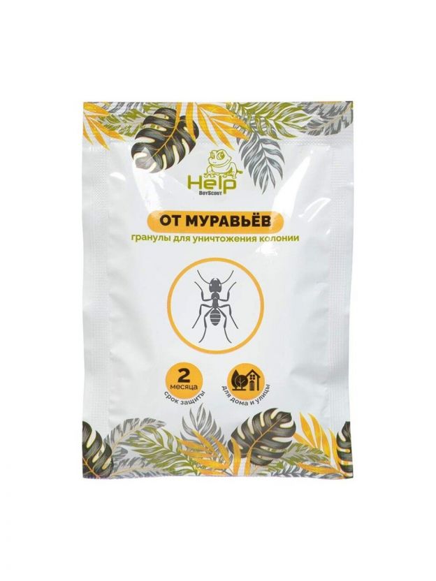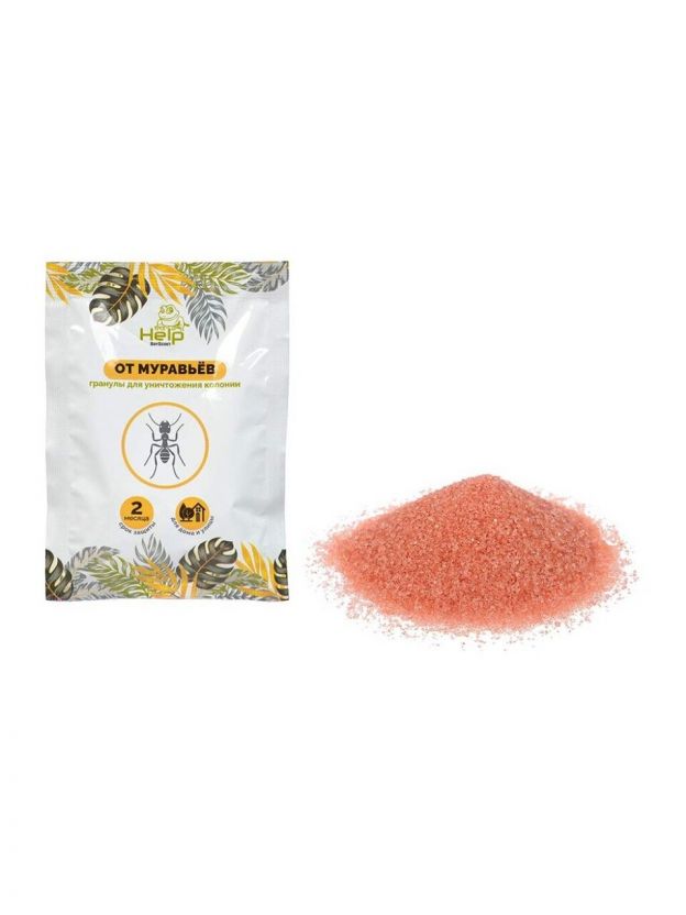 Гранулы от муравьев Help являются эффективным средством для уничтожения домашних и садовых муравьев. Гранулы содержат аттрактант, который привлекает муравьев. Насекомые поедают гранулы, и активное вещество начинает свое губительное действие. Эффект сохраняется до 2-х месяцев.