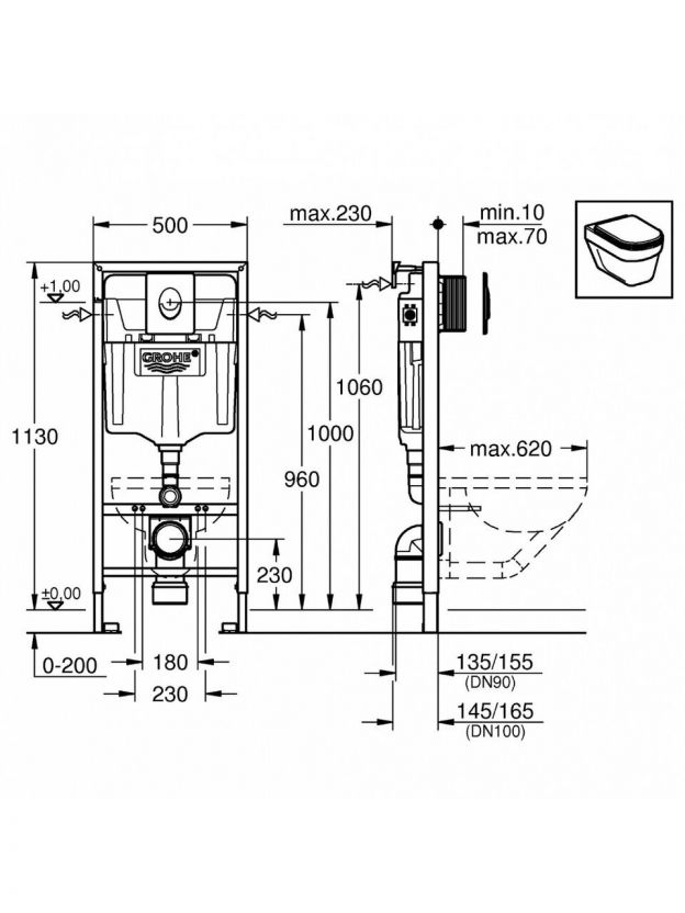 Инсталляция Grohe Rapid SL 38721001 для подвесного унитаза. Предоставит свободу в реализации самых смелых идей при проектировании ванной комнаты и обеспечит быструю и надежную установку.