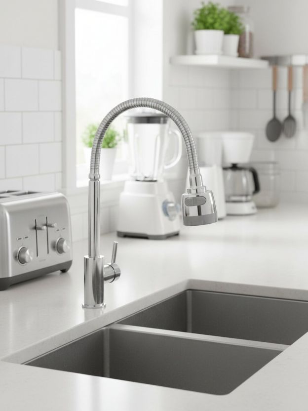 Покупатели часто спрашивают, как выбрать излив для кухни и чем гибкий вариант лучше обычного. Гибкий излив позволяет направлять струю воды под разными углами, что особенно удобно для глубоких раковин и нестандартных задач. В отличие от жестких моделей, этот излив снижает риск случайных повреждений и облегчает уход за мойкой. Подходит ли для фильтрованной воды? Да, материал не влияет на вкус воды и устойчив к коррозии.