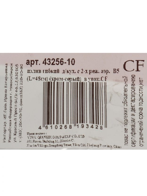 Излив рассчитан на стандартные кухонные смесители, диаметр резьбы совместим с большинством моделей. Уточните размер посадочного места перед покупкой для точного соответствия.