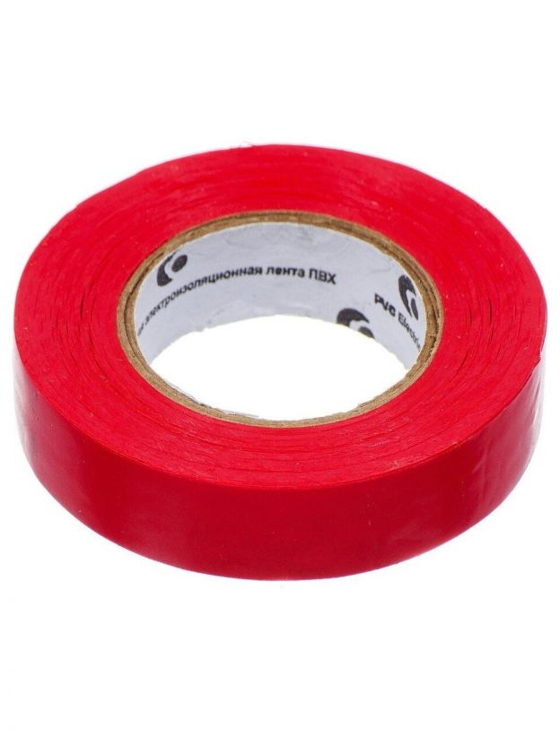 Изолента ПВХ, 15 мм, 150 мкм, красная, 20 м, индивидуальная упаковка, Bartex