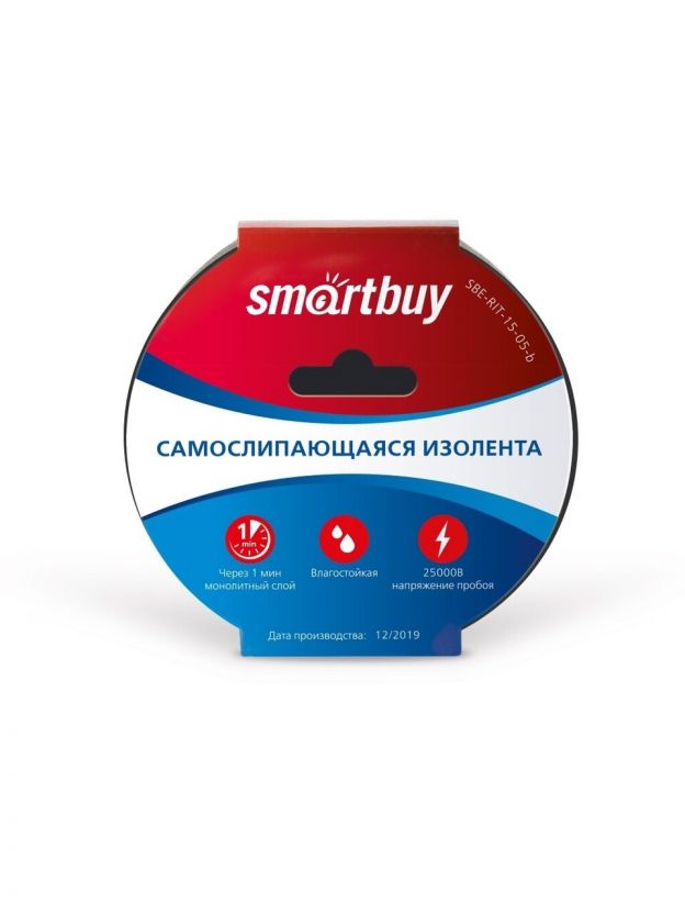 Изолента ПВХ, 15 мм, черная, 5 м, самослипающаяся, Smartbuy, SBE-RIT-15-05-b