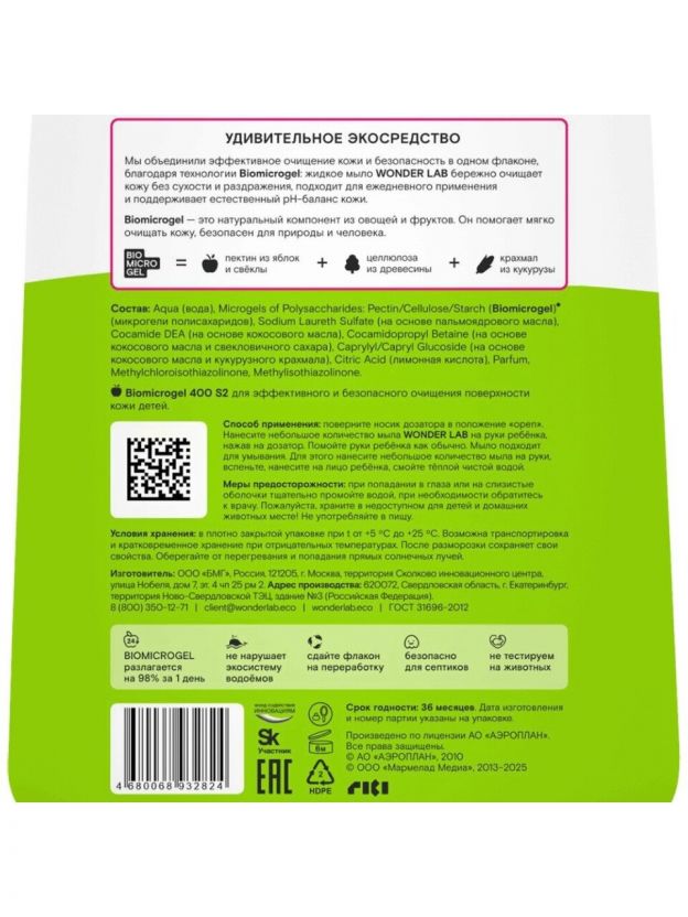 Выбирайте экомыло Wonder Lab — это выгодная цена, уверенность в безопасности и забота о коже вашего ребёнка. Оформите заказ сейчас и получите качественный продукт с доставкой прямо домой.