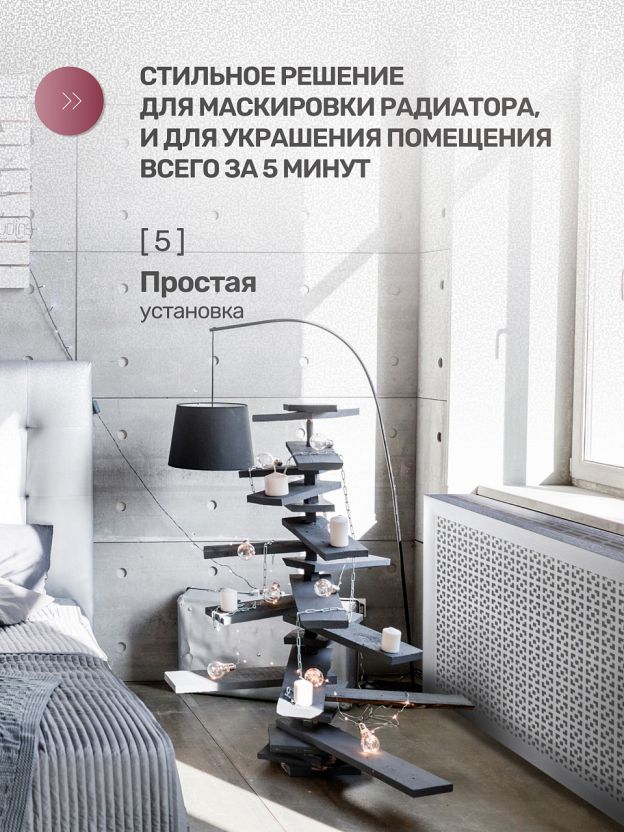 Декоративный экран для радиатора отопления - это идеальное решение для любого интерьера. Он служит не только для маскировки радиатора, но и для украшения помещения. Специальная конструкция экрана обеспечивает отличную теплоотдачу, сохраняя комфортный микроклимат в помещении и предотвращая потери тепла.