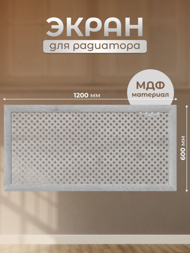 Экран для радиатора, МДФ, 1200х600 мм, дуб серый, Готико, Стильный Дом