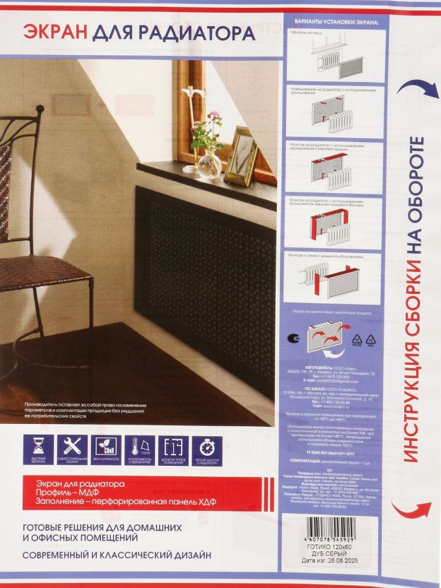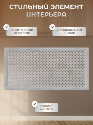 Декоративный экран изготовлен из МДФ, который не содержит вредных для здоровья веществ. Это особенно важно для людей с аллергией или семей с маленькими детьми. Обладает высокой устойчивостью к механическим повреждениям, влаге и высоким температурам, что обеспечивает его долговечность.