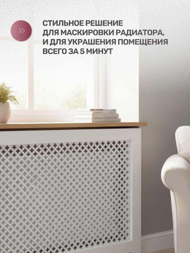 Благодаря оптимальным размерам 600х600 мм экран подходит для большинства стандартных радиаторов, обеспечивая аккуратное и эстетичное оформление отопительных приборов. Материал МДФ отличается прочностью и долговечностью, легко очищается от пыли и сохраняет привлекательный внешний вид на протяжении всего срока эксплуатации. Экран выполняет не только декоративную функцию, но и защищает радиатор от механических повреждений и загрязнений, делая уход за отопительной системой более простым и удобным.