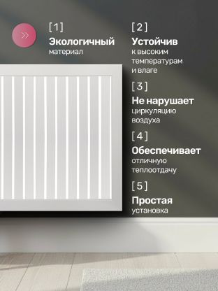 - Оптимальные параметры: размер 900х600 мм, влагостойкий МДФ, подходит для большинства стандартных радиаторов.