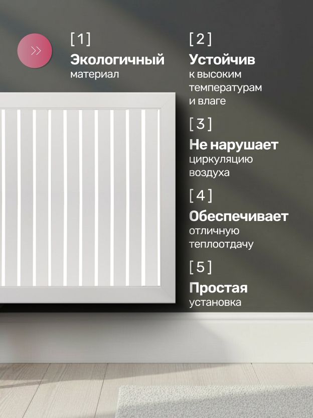 Выбирая экран для радиатора, многие задаются вопросом: «Какой лучше для детской или гостиной?». Эта модель безопасна для детей, не имеет острых углов и легко очищается от пятен. В отличие от металлических аналогов, МДФ-экран не нагревается до опасных температур, а белый цвет DE LUXE визуально расширяет пространство. Если вы ищете, как выбрать экран для радиатора под размер — 900х600 мм подходит для большинства типовых батарей, а монтаж займет всего несколько минут и не требует специальных инструментов.