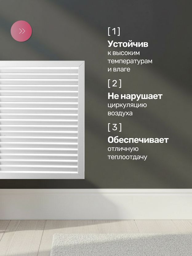 Радиаторная решетка позволяет закрыть ниши с батареями отопления, когда их внешний вид не вписывается в созданный интерьер. При этом теплый воздух будет беспрепятственно поступать в помещение через достаточное количество отверстий в жалюзи.