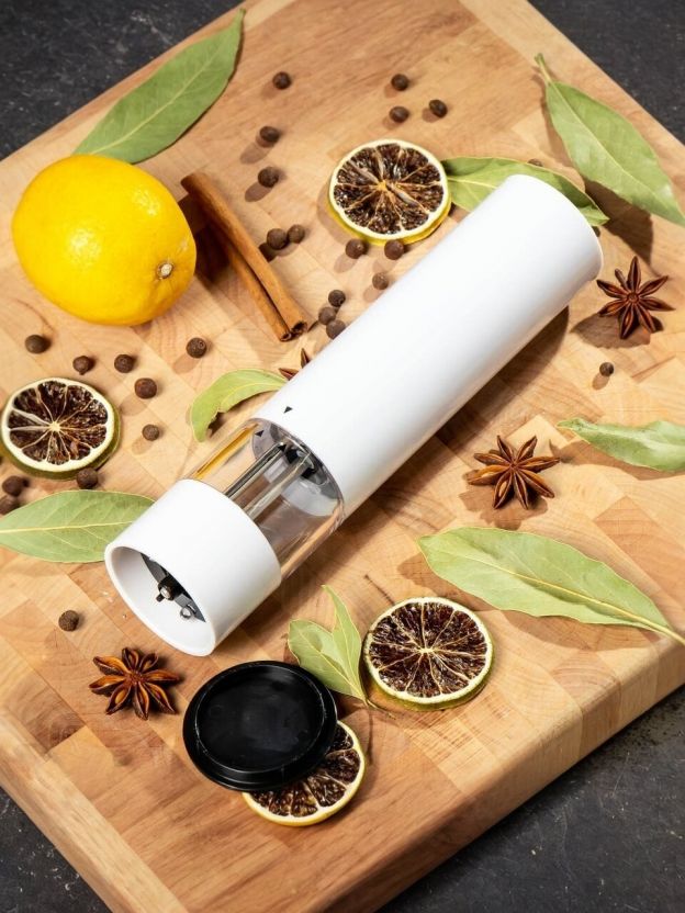 Электрическая мельница для специй подходит для различных видов приправ и может использоваться: для перца, специй, приправ или для соли. Перечница не имеет дополнительных крышек и колпачков и включается нажатием одной кнопки, благодаря чему ее удобно использовать одной рукой в отличие от механических мельниц для перца.