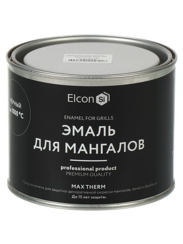 Эмаль Elcon, Max Therm, для мангалов, быстросохнущая, глянцевая, черная, 0.4 кг, 1000°С
