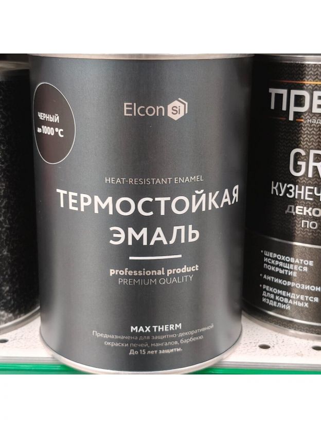 Эмаль Elcon, декоративная, термостойкая, быстросохнущая, кремнийорганическая, глянцевая, черная, 0.8 кг, 1000°С