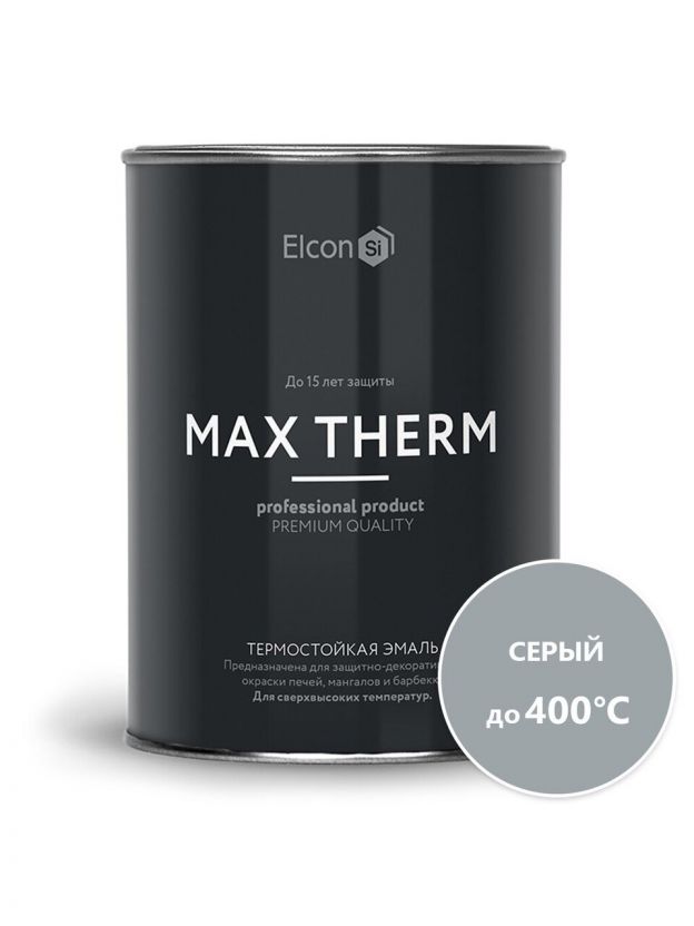 Эмаль Elcon, декоративная, термостойкая, быстросохнущая, кремнийорганическая, глянцевая, серая, 0.8 кг, 400°С