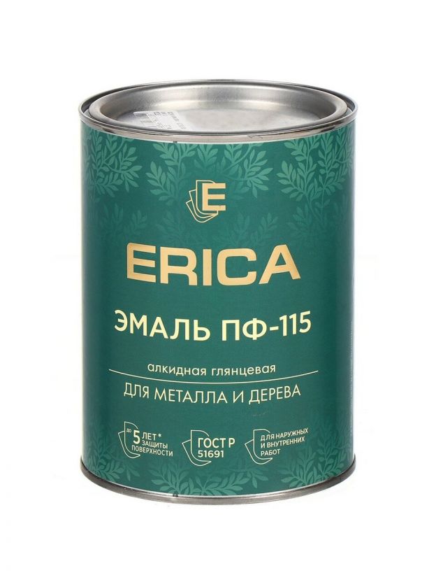 Эмаль Erica, ПФ-115, для внутренних и наружных работ, алкидная, глянцевая, белая, 0.8 кг
