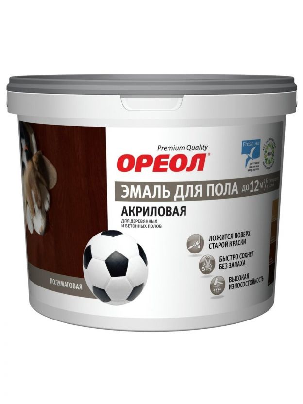 Эмаль Ореол, для пола, быстросохнущая, акриловая, полуматовая, темно-серая, 2.3 кг