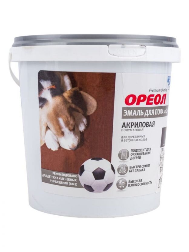 Эмаль Ореол, для пола, быстросохнущая, акриловая, полуматовая, желто-коричневая, 0.9 кг