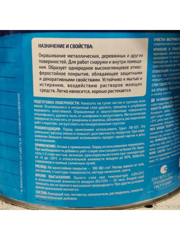 • Состав: Алкидный лак, пигменты, наполнители, добавки.