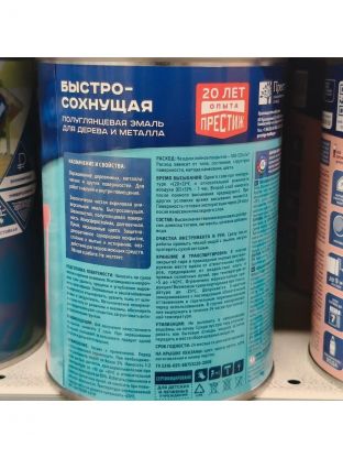Экологически чистая акриловая полуглянцевая универсальная эмаль. При работе имеет запах зеленого яблока, который исчезает при высыхании. Имеет высокий уровень атмосферостойкости и быстро сохнет. Широчайшая гамма из 12 стойких и насыщенных цветов на самого взыскательного покупателя.
