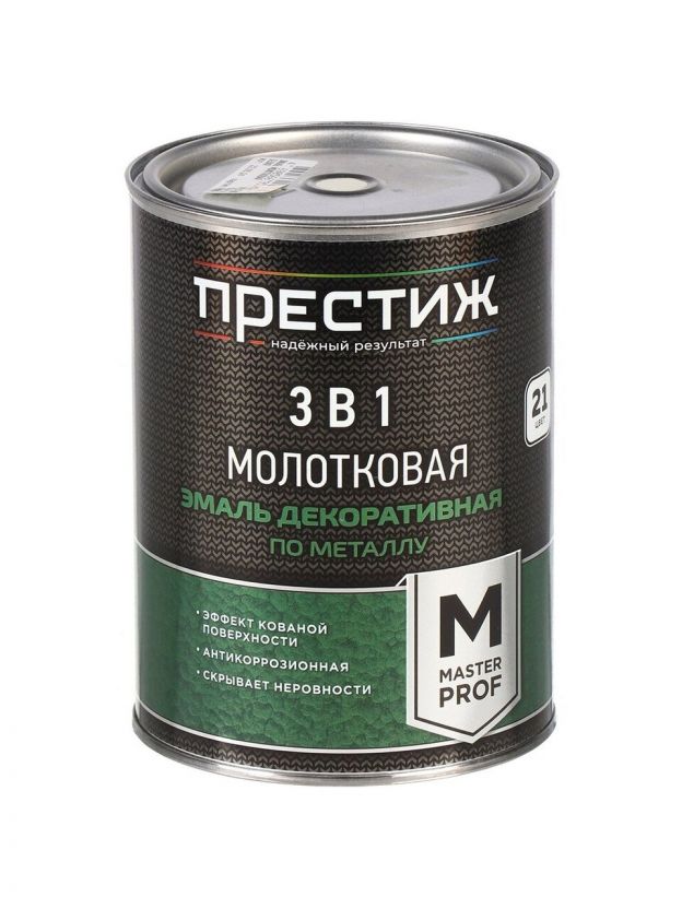 - Окрашивание металлических, деревянных и других поверхностей с помощью молотковой эмали Престиж позволяет создать декоративное и защитное покрытие с эффектом кованой поверхности, которое скрывает мелкие неровности и огрехи основания.