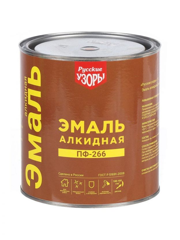 Эмаль Русские узоры, Х5 ПФ-266, алкидная, золотисто-коричневая, 2.8 кг