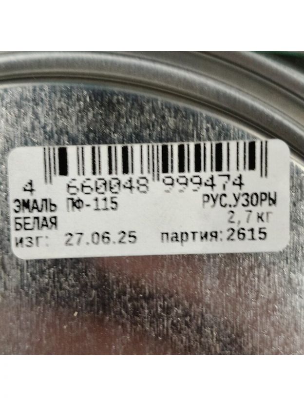 Эмаль Русские узоры, ПФ-115, алкидная, глянцевая, белая, 2.7 кг