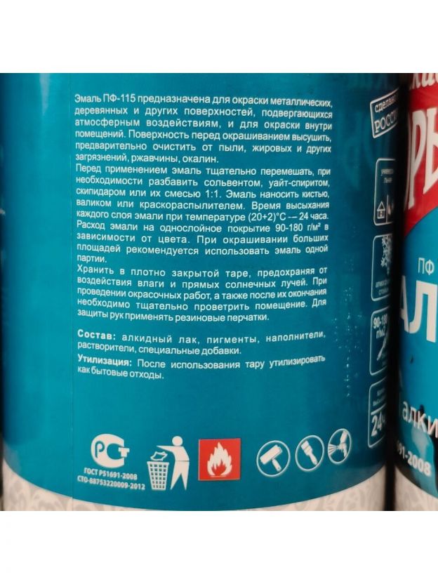 Эмаль ПФ-115 предназначена для окраски металлических, деревянных и других поверхностей, подвергающихся атмосферным воздействиям, и для окраски внутри помещений. Поверхность перед окрашиванием высушить, предварительно очистить от пыли, жировых и других загрязнений, ржавчины окалин.