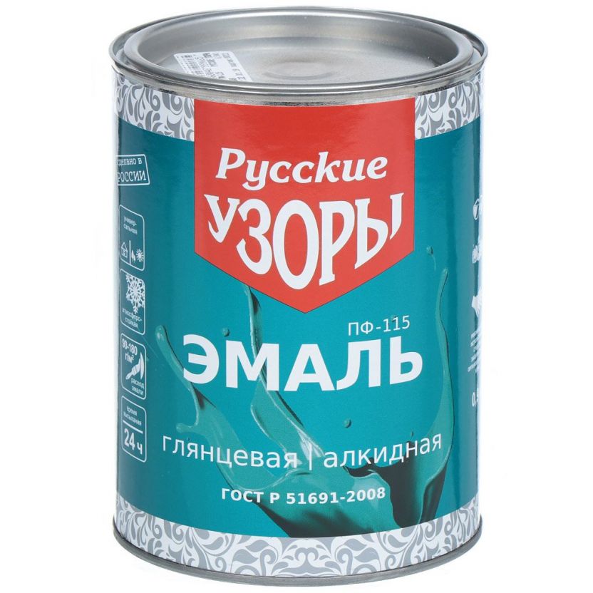Эмаль Русские узоры, ПФ-115, алкидная, глянцевая, изумрудная, 0.9 кг