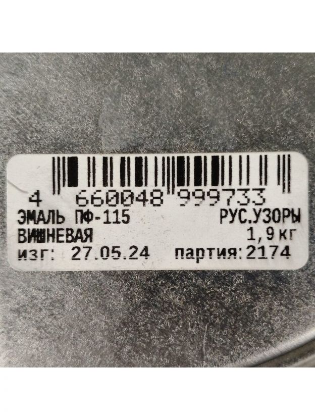 Эмаль Русские узоры, ПФ-115, алкидная, глянцевая, вишня, 1.9 кг