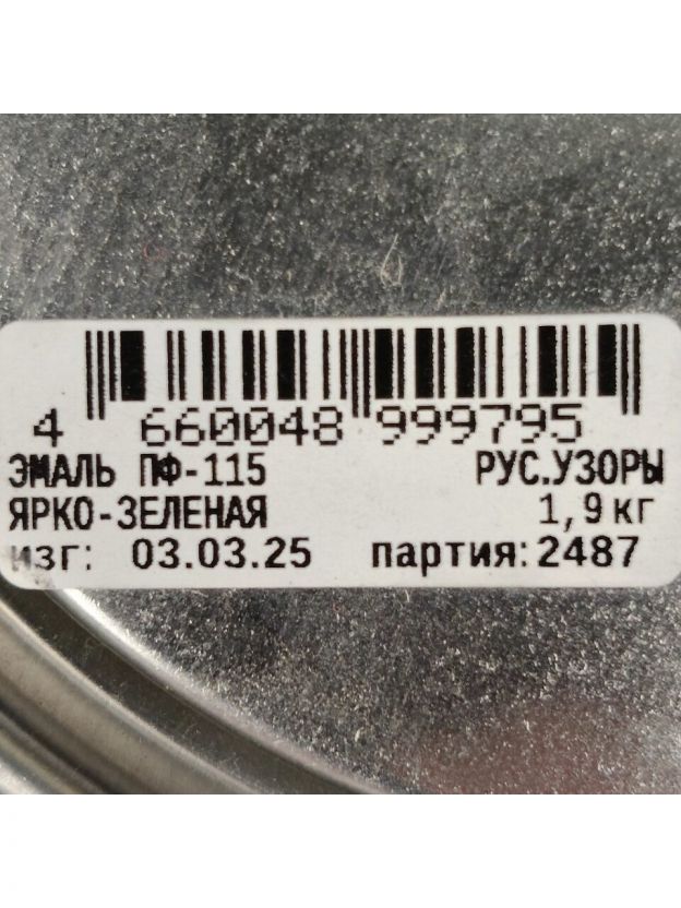 Эмаль Русские узоры, ПФ-115, алкидная, глянцевая, ярко-зеленая, 1.9 кг