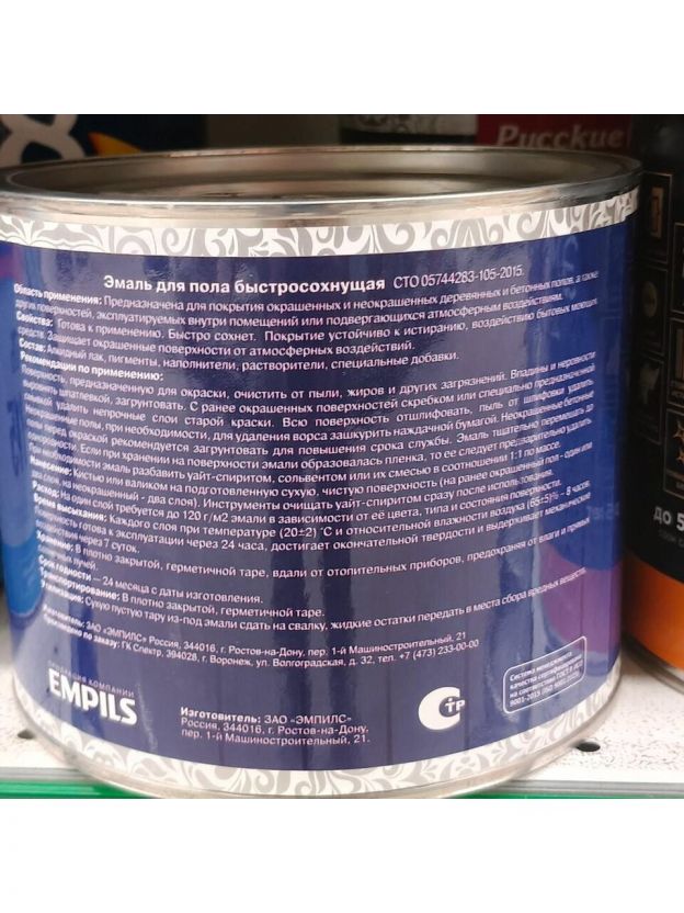 Нанесение: Кистью или валиком на подготовленную сухую, чистую поверхность (на ранее окрашенный пол - один или два слоя, на неокрашенный - два слоя). Инструменты очищать вайт-спиритом сразу после использования.