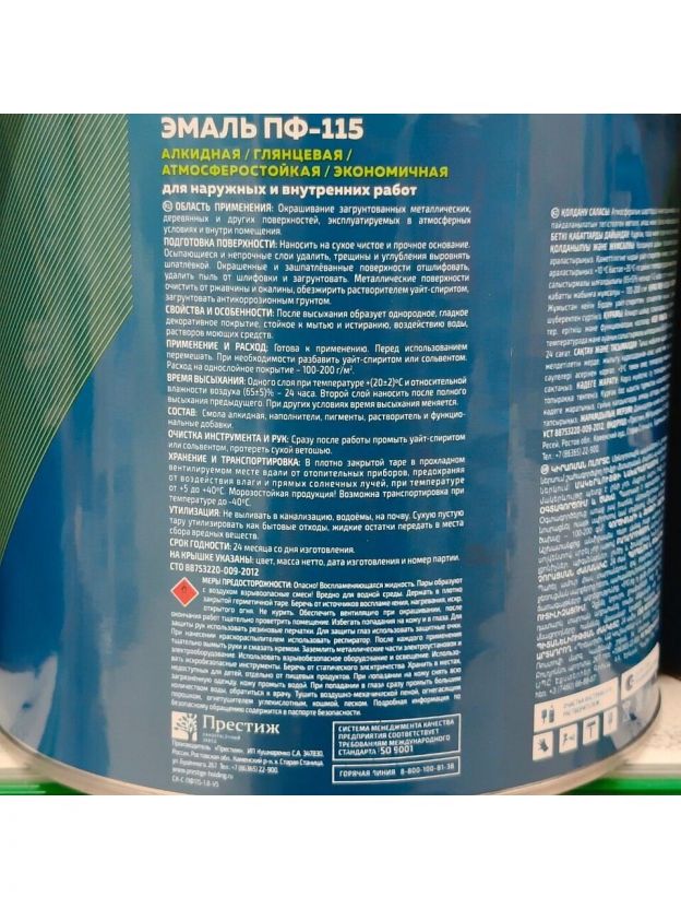 Состав: Алкидный лак, наполнитель, пигменты, растворитель, вспомогательные добавки.