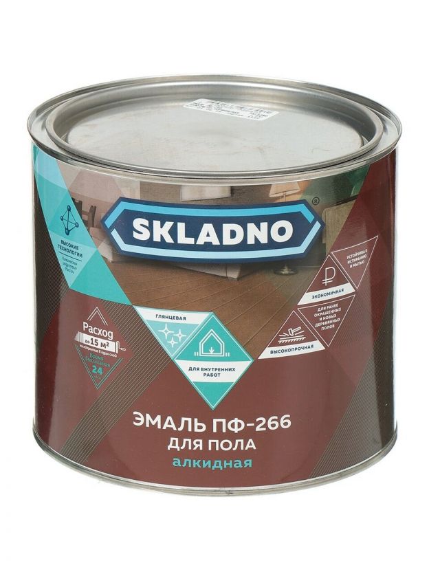 Эмаль Skladno, ПФ-266, алкидная, глянцевая, красно-коричневая, 1.8 кг
