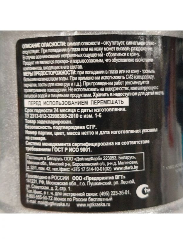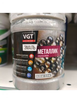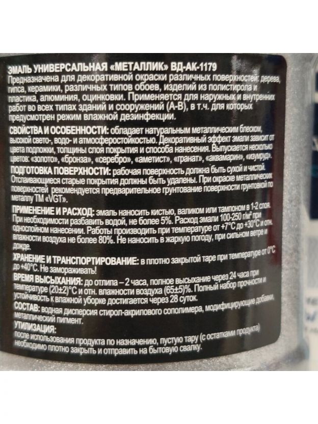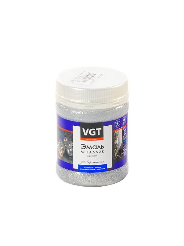 Эмаль VGT, ВД-АК-1179 Металик, универсальная, акриловая, глянцевая, серебро, 0.23 кг