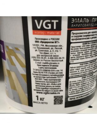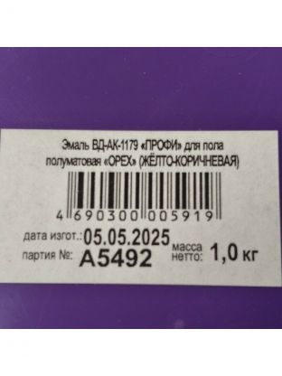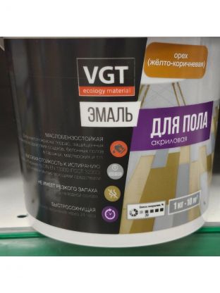 Эмаль VGT, ВД-АК-1179, для пола, акриловая, полуматовая, орех (желто-коричневый), 1 кг
