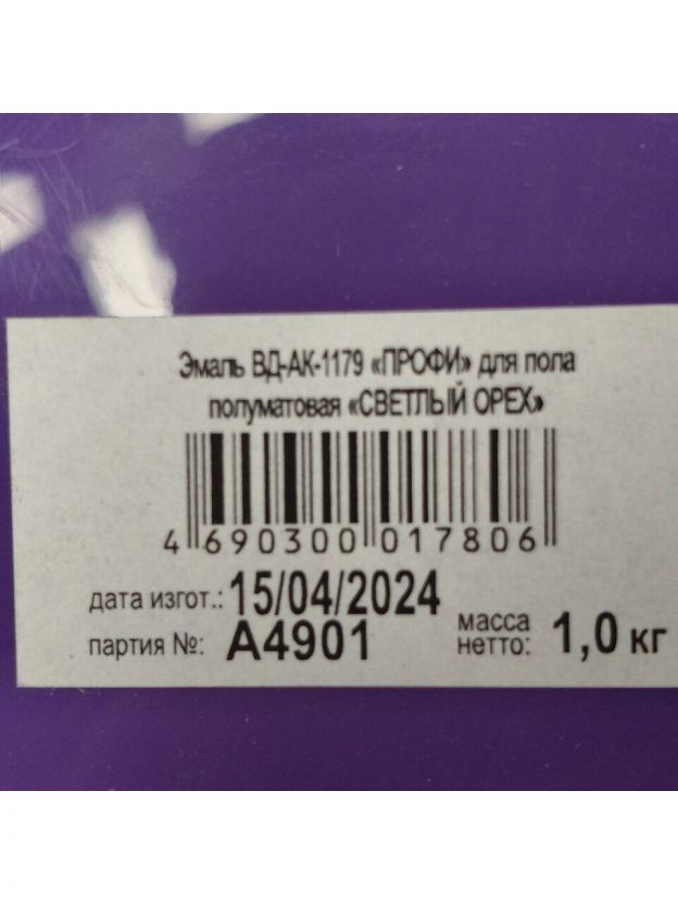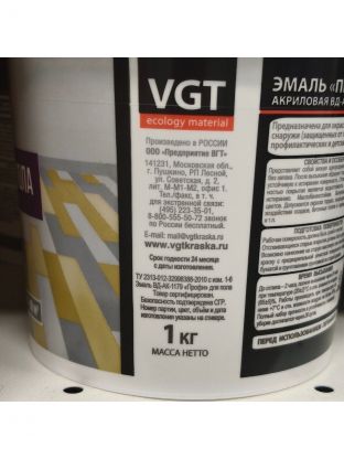 Эмаль VGT, ВД-АК-1179, для пола, акриловая, полуматовая, светлый орех, 1 кг