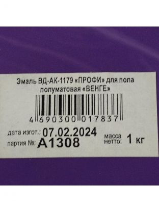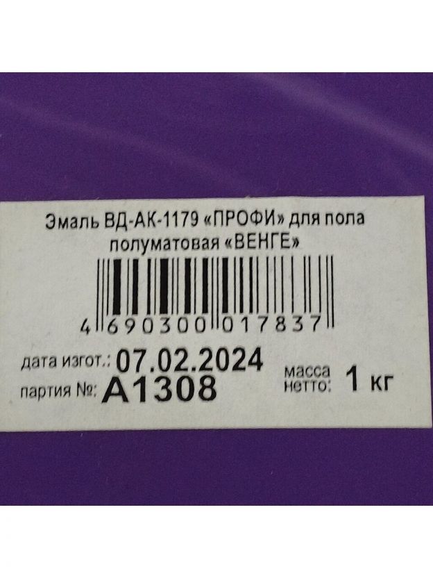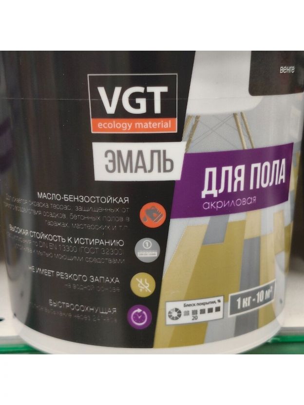 Эмаль VGT, ВД-АК-1179, для пола, акриловая, полуматовая, венге, 1 кг