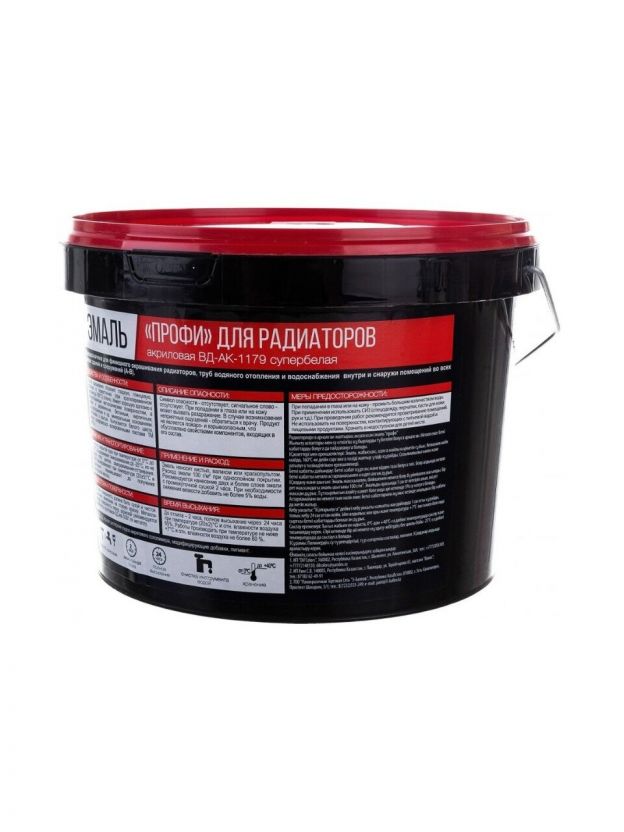 Предназначена для финишного окрашивания радиаторов, труб водяного отопления и водоснабжения в бытовых и строительных условиях. Изготовлена на основе самосшивающейся акриловой дисперсии, обеспечивающей более качественные характеристики по сравнению с другими обычными полимерами.