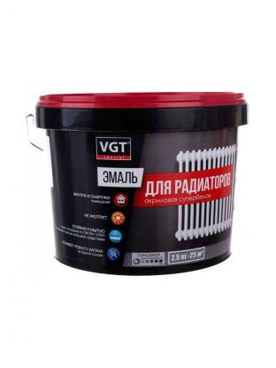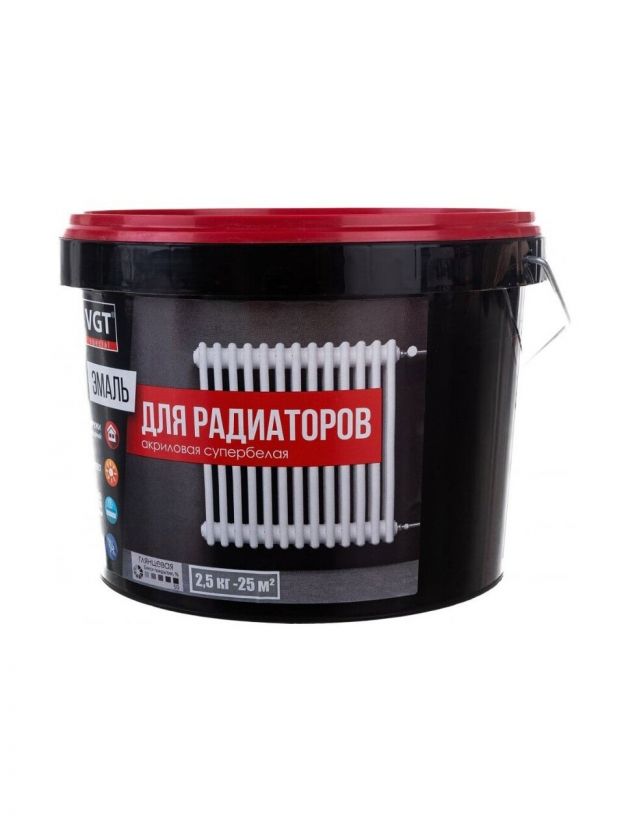 Эмаль VGT, ВД-АК-1179, для радиаторов, акриловая, глянцевая, супербелая, 2.5 кг