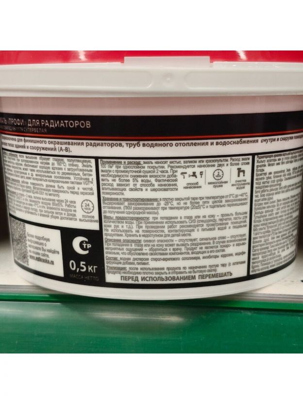 Предназначена для финишного окрашивания радиаторов, труб водяного отопления и водоснабжения в бытовых и строительных условиях. Изготовлена на основе самосшивающейся акриловой дисперсии, обеспечивающей более качественные характеристики по сравнению с другими обычными полимерами.