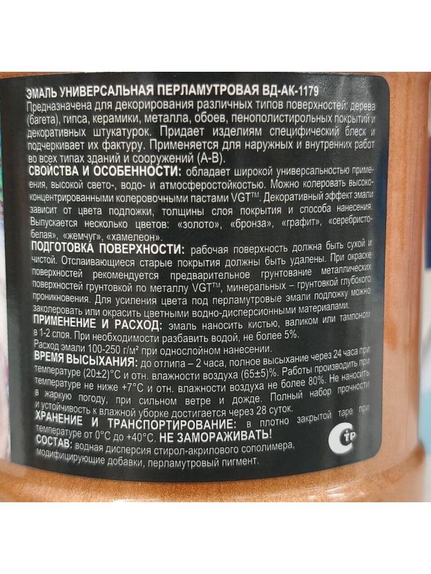 Эмаль VGT, ВД-АК-1179, универсальная, акриловая, перламутровая, бронза, 0.23 кг