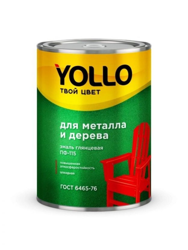 Эмаль Yollo, ПФ-115, для внутренних и наружных работ, алкидная, глянцевая, зеленая, 0.9 кг