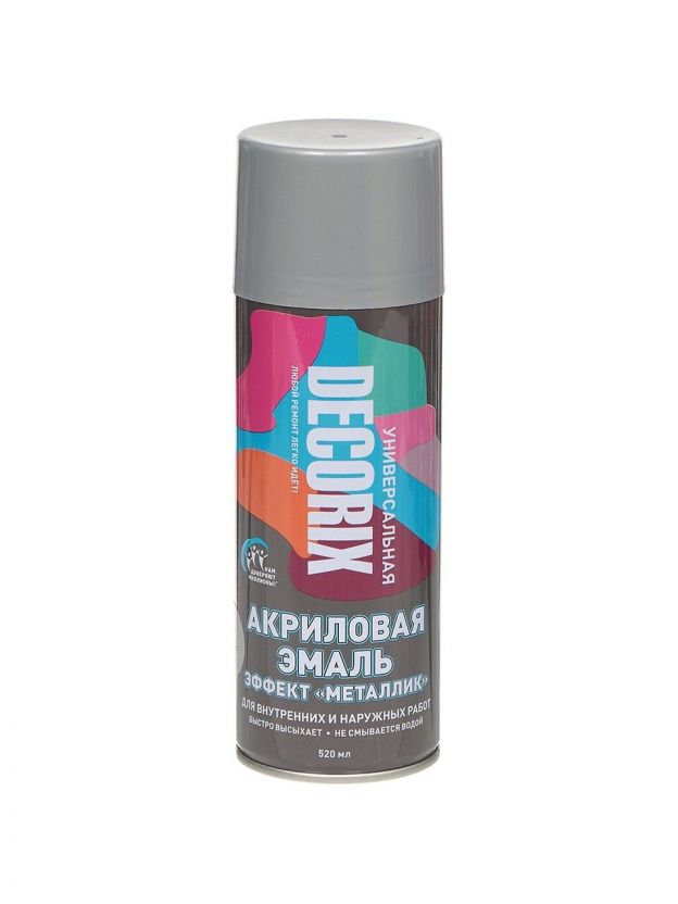Высококачественная универсальная акриловая эмаль Decorix с эффектом «металлик» используется в декоративно-оформительских работах, строительстве и ремонте. Предназначена для окрашивания: древесины, пластика, металла, бетона, кирпича, керамики, стекла, картона, минеральных поверхностей. Аэрозольная эмаль удобна для окрашивания небольших поверхностей и труднодоступных мест. Образует гладкое, устойчивое к выцветанию покрытие.
