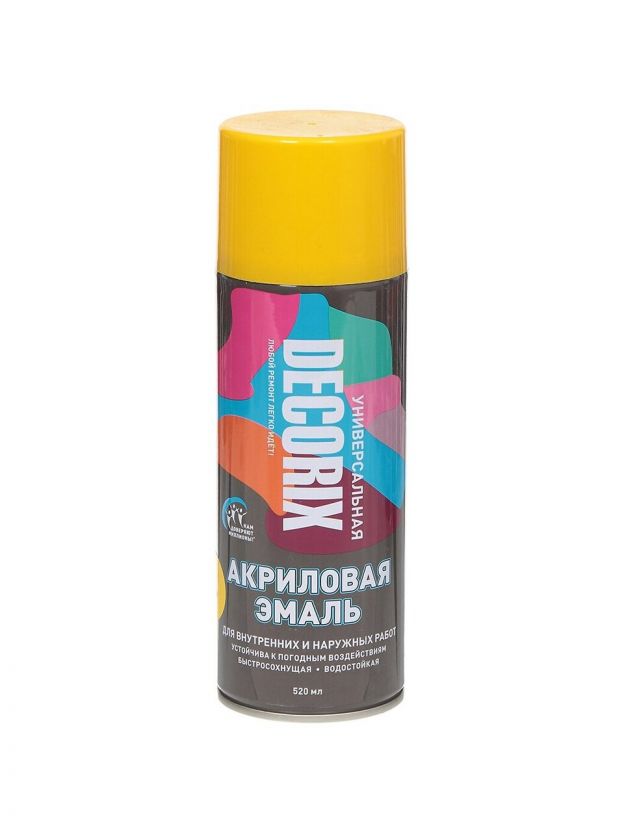 Эмаль аэрозольная, Decorix, универсальная, акриловая, глянцевая, желтая, A07, 520 мл