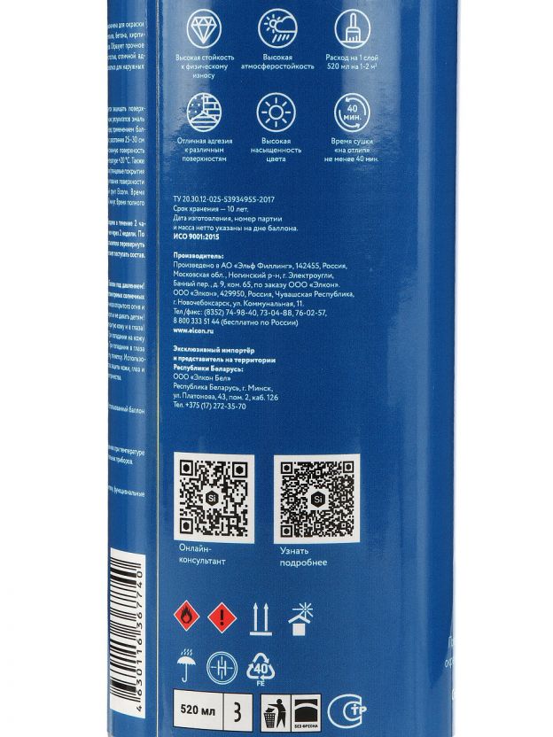 Эмаль аэрозоль Elcon на алкидной основе — это универсальное решение для быстрого и равномерного окрашивания различных поверхностей. Благодаря аэрозольной форме, покраска становится простой и аккуратной даже в труднодоступных местах. Если вы ищете, какую эмаль выбрать для дачи, дома или ремонта, обратите внимание на Elcon: она обеспечивает глянцевый эффект и плотное укрывистое покрытие без разводов и подтёков.